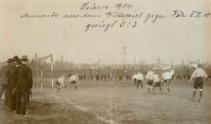 „Ostern 1904, Momente aus dem Wettspiel gegen Köln F.C. 1899, gesiegt 5:3“, vermerkt der unbekannte Verfasser auf diesem Bild.