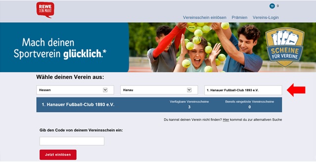 Macht alle mit- lasst Euch bei Euren Einkäufen den oder die Vereinsscheine aushändigen und gebt sie umgehend unter rewe.de/Verein ein! Die Nachwuchs-Kicker des FC Hanau 93 freuen sich mit Sicherheit über Fußbälle, Ausrüstung usw., die ihnen auf diesem Weg zugutekommen werden!